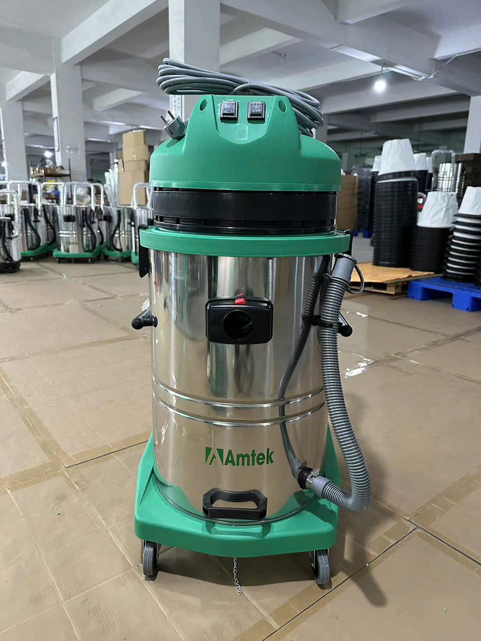 - Máy hút công nghiệp 2Motor Amtek AT-602 có 2 mô tơ 100% lõi đồng mạnh mẽ với công suất lên đến 2400W, giúp hút sạch mọi bụi bẩn một cách nhanh chóng và hiệu quả.